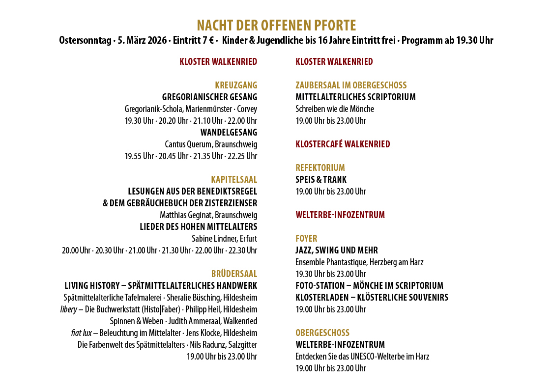 Jedes Jahr am Ostersonntag findet im Kloster Walkenried die "Nacht der Offenen Pforte" statt. Der perfekte Ausflugstipp, um mit Familie, Freundinnen und Freunden ins Mittelalter einzutauchen!