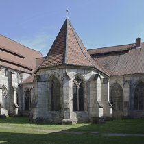 This is also a triple-naved basilica with five bays, with six-section vaults in the middle nave and a five-naved choir. The eastern part was used to hold services as early as 1253. In 1290, after 80 years of construction, Bishop Siegfried II of Hildesheim consecrated the Gothic monastery church. At close to 100 metres long, it was one of the largest churches in northern Germany at that time.