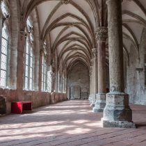 The chapter house, the monks' meeting room, has been a Protestant church since 1570. The hall's vaults are carried by columns without capitals. The original colouration of the vault ribs was reconstructed in the 1980s based on existing evidence.